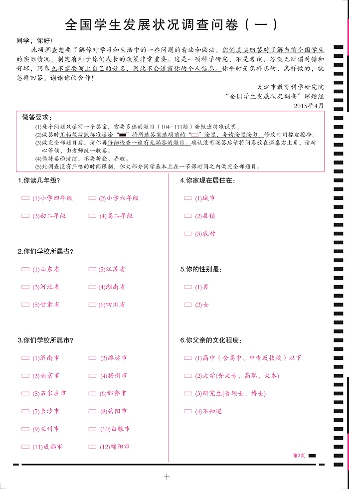 全國學生發展狀況調查問卷